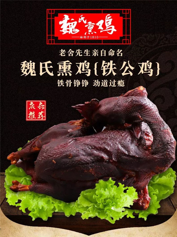 為了便于往來客商購買后能長時間保存,清嘉慶十五年(1810年),魏氏扒雞店傳人魏永泰老先生繼承祖?zhèn)靼请u制作工藝,借鑒傳統(tǒng)的熏烤方法,研制出了能夠長時間保存的熏雞,并代代相傳,聞名至今已有二百余年。